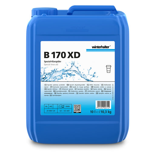 El abrillantador B 170 XD destaca por ser una fórmula segura y estable bajo condiciones normales de uso. Al ser un producto libre de fosfatos y sustancias peligrosas como NTA o EDTA, reduce los riesgos para la salud del personal y el impacto ambiental. Sin embargo, debido a su alta concentración como producto profesional para hostelería, debe gestionarse siempre mediante sistemas de dosificación automática para evitar el contacto directo con la piel o los ojos durante la manipulación manual. Se recomienda mantener los envases en sus soportes originales y asegurarse de que los tubos de succión estén correctamente instalados para evitar derrames en la zona de lavado.